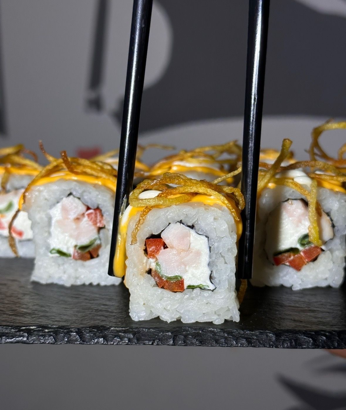 Сливочный сыр, копченая курица,болгарский перец, зеленый лук, картофель пай, сырный соус, майонез 190гр